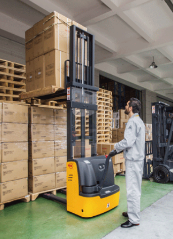 提升高度大約在1.8米時(根據所裝配的提升門架):高于安全接通高度時堆垛車將減低行駛速度至大約3km/h;